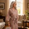 El model Garos destaca per un estampat floral suau i delicat, amb flors en tons rosa empolsat, lavanda, verd oliva i blanc sobre un fons malva clar. Un disseny atemporal i relaxant, aplicat mitjançant impressió digital per aconseguir una gran definició i durabilitat. Els ribets en to a joc al coll i les mànigues aporten un acabat cuidat i elegant.