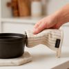Fabricado en tejido mezcla (50% algodón y 50% poliéster), con relleno térmico interior para protegerte del calor al manipular utensilios, bandejas o cacerolas. Su textura acolchada garantiza un agarre cómodo y seguro.