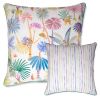 Funda de cuadrante de 55 x 55 cm de tejido 100% algodón Percal 200 hilos. Su estampación digital confiere al dibujo gran definición y durabilidad. El estampado por una de sus caras presenta unos preciosos dibujos de unas palmeras y plantas tropicales en colores vistosos, entremezcladas con unos divertidos dibujos de chimpancés, lémures y pájaros tropicales sobre un fondo de color claro, y por el otro lado presenta un estampado de rayas en vertical de los mismos tonos que las palmeras y sobre el mismo fondo de color claro. La funda de cuadrante viene con un ribete de color verde por todo su contorno y su cierre es con cremallera invisible. Viste tu cama con este precioso y colorido diseño, y aporta ese toque original y divertido a tu dormitorio. Puedes combinarla con la funda nórdica, el juego de cama, y el coprileto a conjunto, y con nuestra colección de lisos para cama de 100% algodón Percal de 200 hilos.