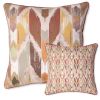 Una cara con un motivo étnico de gran tamaño en tonos tierra, granates, mostaza y verdes apagados.