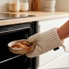 Confeccionada en tejido mezcla (50% algodón y 50% poliéster), cuenta con relleno térmico interior para ofrecer una protección eficaz frente al calor. Su textura suave y su acabado de calidad garantizan comodidad y seguridad al manipular bandejas, ollas o utensilios calientes.