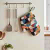Protege tus manos con estilo con la manopla modelo Retro, un diseño geométrico lleno de color que aporta personalidad y alegría a tu cocina.